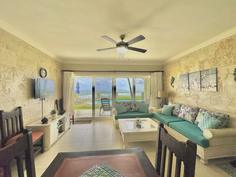 Experience true beachfront living in this exceptional ground-floor, 1-bedroom oceanfront condominium, located in an exclusive boutique complex of only six unitsa rare find on Cabarete Beach. With immediate access to the water and uninterrupted ocean views from every room, this turnkey property offers a level of privacy and proximity that is seldom available. Wake up each morning to panoramic sea views and fall asleep to the soothing sound of the waves. The corner bedroom is perfectly positioned to capture the ocean breeze and breathtaking views, while the open-concept living space flows seamlessly onto a spacious private terraceideal for outdoor dining, relaxing, or entertaining right on the beach. Enjoy direct access to the pool and beachfront from your terrace, making everyday life feel like a luxury vacation. Finished with high-end materials and elegant details throughout, the condo is offered fully furnished and move-in ready, making it perfect as a personal retreat or a high-demand rental investment. Property Highlights: Ground-floor 1-bedroom absolute beachfront condo Uninterrupted ocean views from every room Private terrace with direct pool and beach access Corner bedroom with panoramic sea views Fully furnished, turnkey property Boutique complex with only 6 exclusive residences Location & Lifestyle Located just 1.3 miles from Cabarete Center, this property combines tranquility with convenience. Enjoy miles of sandy beaches for long walks, world-class water sports, beachfront restaurants, and the vibrant Cabarete lifestyleall just minutes away. Whether youre searching for a luxury beachfront escape, a vacation home, or a strong rental investment, this oceanfront condo offers unmatched value, location, and lifestyle. Opportunities like this are extremely rare. Contact Teresia Rosario today to schedule a private showing or receive more details.