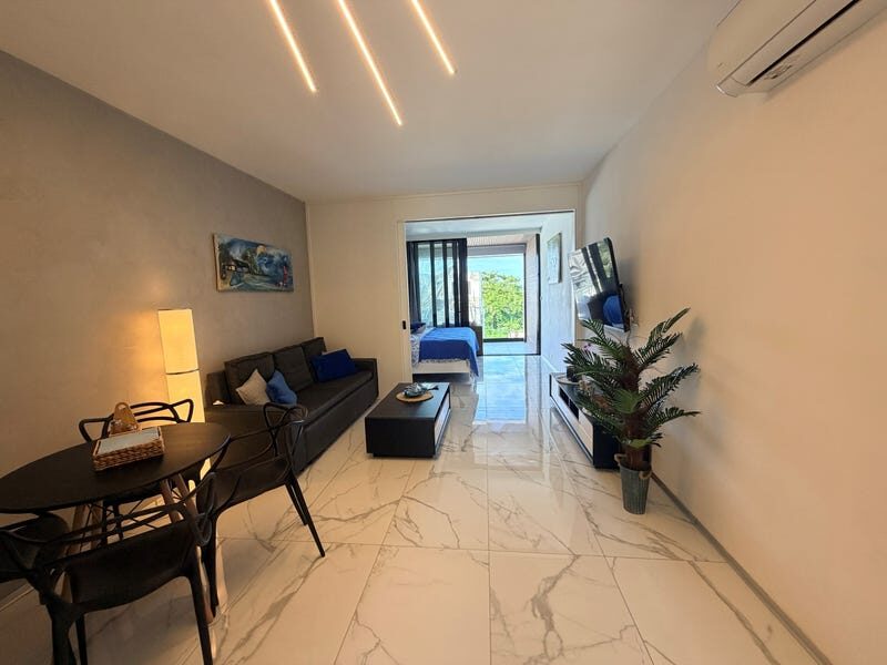 Discover this beautiful 1-bedroom, 1-bathroom condo in one of the most desirable developments near Encuentro Beach, close enough to walk from your door to the shoreline. Ideally located between the downtown areas of Cabarete and Sosa, this new construction residence offers contemporary interior design with a modern and functional layout across 57.10 m of well-planned space. Inside, you will find a fully equipped kitchen with modern appliances, air conditioning, a flat-screen television, comfortable and stylish furnishings, a separate bedroom, and a spacious private balcony with ocean views. The unit also includes one assigned parking space and solar panels for increased efficiency. The surrounding area is rapidly growing and offers every convenience within walking distance, including mini-markets, restaurants, fitness classes, yoga, and cafs. A nearby food truck park and close access to the main road make this an excellent option for guests or residents who prefer not to use a car. Residents benefit from resort-style amenities, including a swimming pool, landscaped gardens, 24-hour security, an on-site restaurant, and a rooftop gym with panoramic ocean views. Priced at USD 170, 000 with an HOA fee of USD 150 per month, this condo represents a strong investment opportunity in a high-demand coastal destination, ideal for rental income or everyday living. Minutes from the beach and the vibrant surf culture of Encuentro, this property offers comfort, convenience, and an exceptional lifestyle in one of Cabaretes most dynamic and fast-growing communities