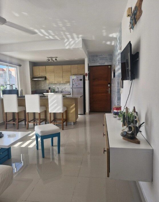 Apartamento Residencial de Lujo en Punta Cana Ideal para Vivir o Invertir Descubra el oasis perfecto en Punta Cana con este exclusivo apartamento totalmente listo para convertirse en su nuevo hogar o en una inversin rentable. Con 2 habitaciones y 1 bao, este elegante espacio ha sido diseado para ofrecer confort, estilo y funcionalidad en uno de los destinos ms codiciados de la Repblica Dominicana. Ideal para vivir o generar ingresos por alquiler vacacional, esta propiedad es Airbnb-friendly, lo que la convierte en una oportunidad estratgica para inversionistas. En su interior, cada detalle refleja calidad: modernos aires acondicionados tipo split en todas las reas, mobiliario cuidadosamente seleccionado, cocina equipada con lnea blanca, comedor integrado y un acogedor family room para relajarse o compartir con invitados. Su balcn privado permite disfrutar del clima tropical, mientras que las reas comunes ofrecen piscina, gazebo, rea de juegos para nios y ascensor. El edificio cuenta con cmaras de seguridad y la tranquilidad de un parqueo individual, adems de rea de lavado exclusiva. La propiedad tambin es pet-friendly, un valor adicional para propietarios con mascotas. Las terminaciones destacan por su elegancia y durabilidad: pisos en mrmol, cermica y porcelanato, madera de pino, calentador de agua y portn elctrico. No deje pasar la oportunidad de formar parte de la experiencia Punta Cana: sol, playa, estilo de vida y excelente potencial de inversin en un solo lugar.