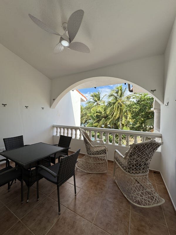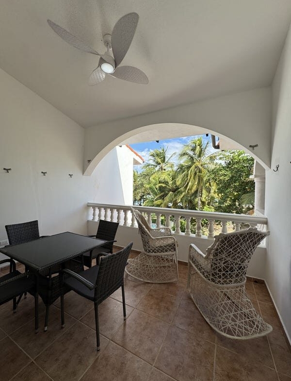 2 Bedroom Beachfront Condo with Ocean View for Sale in Cabarete This 2-bedroom beachfront condo with ocean view for sale in Cabarete offers 110 m of modern coastal living, situated on the third floor of an exclusive and peaceful residential community in Encuentro. Just steps from the ocean, it provides a relaxed Caribbean lifestyle with refreshing sea breezes, panoramic views, and a connection to nature that defines life on the North Coast. The property features two spacious bedrooms, two full bathrooms, and a generous living area that flows into a large, well-equipped kitchen, ideal for cooking and entertaining. A practical laundry area adds everyday convenience. The condo is fully furnished and ready for immediate occupancy. Two private terraces with ocean views extend the living space outdoors, creating the perfect setting for relaxation, dining, or simply enjoying the sound of the waves. The residential community offers 24-hour security, garbage collection, water and communal gas service, maintenance of shared areas, electricity for common spaces, and regular pool cleaning. The HOA fee is USD $550 and includes all listed services. Price: USD $350, 000 Important: Pets, including dogs, are not permitted in this residence. This property presents a rare opportunity to live directly on the beachfront in one of the most desirable coastal communities in Cabarete, ideal for full-time living, vacation use, or as a high-value rental investment.