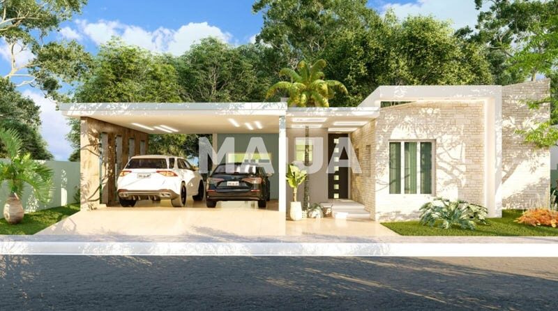 Experience the nature living in Cabarete, Dominican Republic. This stunning new construction home is ready to move in, boasting 152.22 square meters of living space, 2 bedrooms, 2.5 bathrooms, and 3 rooms. Enjoy the perfect blend of modern amenities and traditional touches, including porcelain tile floors, imported bathrooms, and modular wood in the kitchen. The property features a spacious living area, dining room, and kitchen with cabinetry, kitchen hood, and dishwasher. Relax in the comfort of your own backyard, surrounded by a yard, front yard, inner courtyard, garden, and stunning views of the neighbourhood and swimming pool. With a garage and parking space, this home is perfect for those who want to enjoy the best of Cabarete. Located in the heart of Sosa, Puerto Plata, this property offers easy access to the airport and a range of amenities.