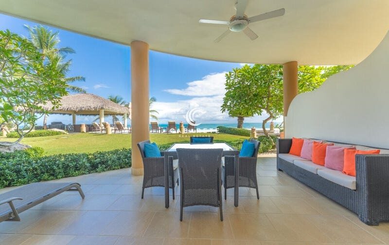 Experience the pinnacle of beachfront luxury with Beachfront Cabarete Center Condo, a stunning residence in one of the best gated communities. This exceptional property offers breathtaking ocean views, spacious interiors, and premium amenities, making it the perfect place to call home or an incredible investment opportunity with high rental demand. Nestled in a vibrant oceanfront community, Beachfront Cabarete Center Condo offers direct beach access, allowing you to step straight onto the sand and enjoy the pristine waters of Cabarete Bay, a world-famous destination for kitesurfing and water sports. Wake up to the sight of the expansive ocean and the natural beauty of the large outer reef, all visible from your window. Enjoy a resort-like atmosphere with meticulously maintained gardens, a stunning infinity pool seamlessly blending into the oceans horizon, and beachfront gazebos for relaxation. Whether you want to take a morning swim, soak in the sun, or unwind by the shore, this property offers the perfect setting for a laid-back yet luxurious lifestyle. This ground-floor condo spans 171.6 square meters, featuring 2 spacious bedrooms and 2 bathrooms, designed with elegance and comfort in mind. High ceilings and open layouts allow for natural light and refreshing ocean breezes to fill the space, creating a bright and airy ambiance. Adding even more value, a separate 19.97 square meter studio unit is located above the covered garage, providing extra flexibility. This additional space is perfect for hosting guests, setting up a private office, or leveraging as a rental option for additional income. Studio Unit: 19.97 square meters, located above the garage Garage: Covered parking space for one vehicle Beachfront Cabarete Center Condo is situated in an area that combines tranquility with accessibility. Just steps away, Ocean One Plaza offers a range of essential services, including: A pharmacy for all your health needs A laboratory and doctors office for peace of mind The local Honey Company, providing fresh honey and dairy products Everything you need is within walking distance, allowing you to enjoy a worry-free lifestyle in one of the Dominican Republics most desirable beach towns. Whether youre looking for a personal paradise or a lucrative real estate investment, Beachfront Cabarete Center Condo offers an unmatched opportunity. With its prime beachfront location, desirable amenities, and proximity to dining, shopping, and outdoor activities, this property is highly sought after by renters and vacationers alike. Dont miss the chance to own Beachfront Cabarete Center Condoa rare opportunity to experience elegant beachfront living in a world-class location. Contact us today to schedule a viewing!