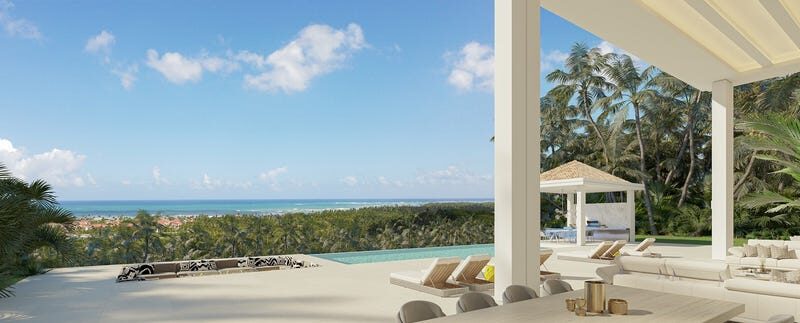 This beautiful home set on a hill in Las Terrenas offers breathtaking views of the Atlantic Ocean and lush tropical jungle. You’ll be greeted by a security gate and a spectacular waterfall entrance before driving up a charming cobblestone path to reach the home, which is located in an elite gated neighborhood. When you arrive, leave your car in the covered parking area and proceed to the villa’s grand entry, a seven-meter-tall historic double door accessible through a bridge over a water feature.Inside, you’ll find a sumptuous corridor leading to a big living area with a double-height ceiling, floor-to-ceiling windows, and an open-plan design that smoothly links to the external living terrace. The villa has an Italian kitchen, indoor and outdoor eating rooms, a walk-in fridge, pantry, a state-of-the-art cinema, a salinated infinity pool, a fire pit, home domestics, and maids quarters. Outside, the spacious terraces are great for relaxing in front of the romantic fire pit and sunken pool bar, while the fully equipped outdoor kitchen is ideal for hosting friends. The center pool features a Jacuzzi area and an infinity design, adding to the villa’s opulence.A huge guest suite and home cinema are located on the ground floor, and a modern open staircase leads to a bridge overlooking the living room. On the next level, two more big guest suites are to the right, and the semi-open main suite is to the left. The main suite is 85 square meters in size and offers breathtaking views of the sunrise through its huge windows. This one-of-a-kind residence is made entirely of the best materials, ensuring a genuinely extraordinary living experience.This villa not only has top-tier amenities, but it also has a top-tier maintenance and rental program, making it an enticing financial prospect.